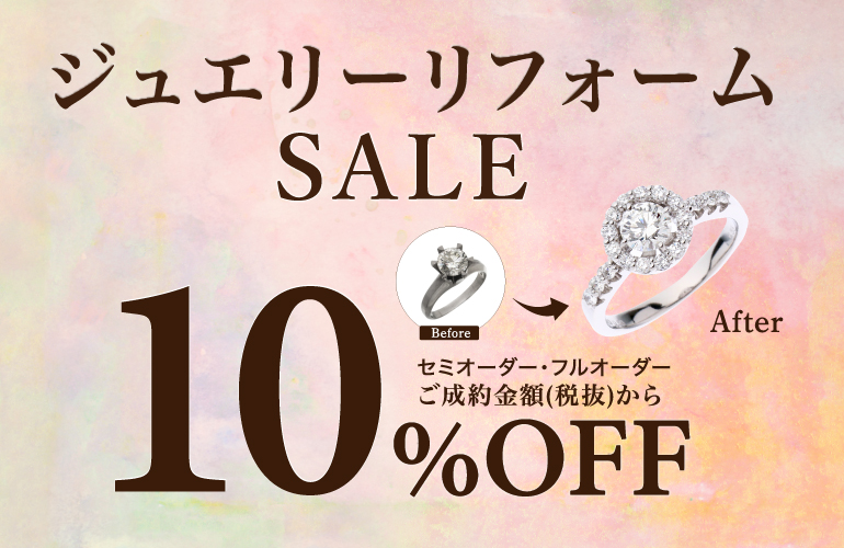 <セミオーダー・フルオーダー>ジュエリーリフォームのご成約金額(税抜)から10%OFF!
